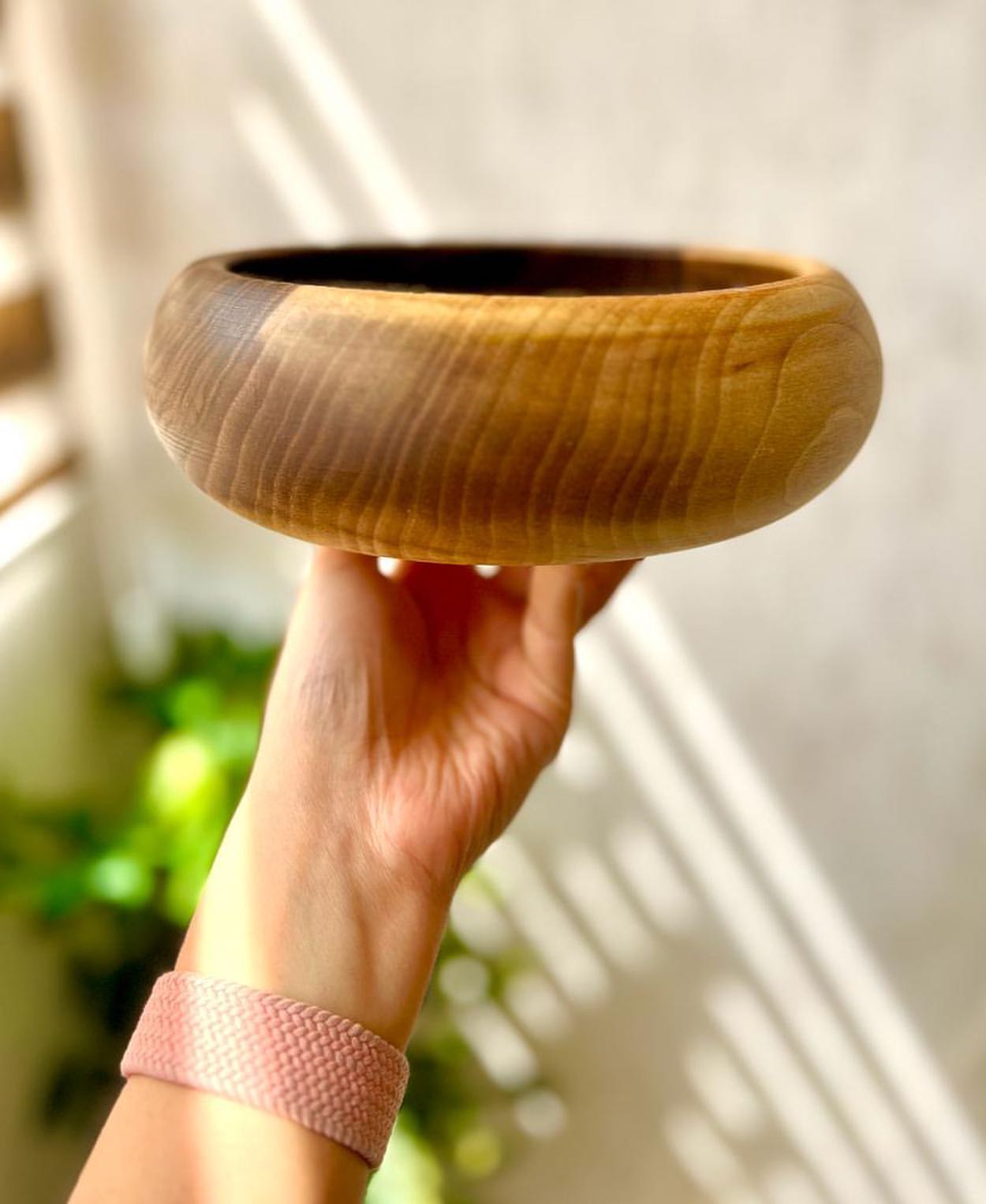 کاسه طرح خمرهای چوب گردو ابعاد قطر ۲۰ سانتی متری ارتفاع